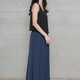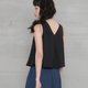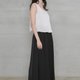 浪漫唯美的傘狀背心上衣,選用內斂雅緻的絲光面料,衣身兩側褶子拼接半透明配布,隨著動作讓身形若隱若現,搭配類似質地的長裙或寬褲,盡顯優雅迷人。