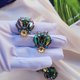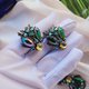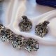 這套應該算是低調的閃亮款,其實鐵灰色的金屬色看來本來就是舊舊的感覺,但它搭配的玻璃萊茵跟水鑽大大的提升整套的亮度,而且很有趣的是把耳環反過來看很像彩色的昆蟲,FLORENZA在設計珠寶上真的很特殊辨識度也很高~
