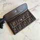 【LA LUNE】Fendi中古二手咖啡色老花真皮革長夾銀包卡片套零錢包