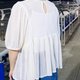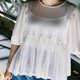 針織網洞布料,連肩蓬袖拼接設計,下擺單層抽褶荷葉,舒適寬鬆版型,可愛又簡約的半長袖外罩衫。