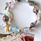 這條手鍊的配色非常特別,它不是單調的同色系,而是由冷暖交織、深淺變化的色彩組成。拓帕貔貅的冰藍、紫鋰輝的柔粉、堇青石的深邃,搭配金色的小配件和一顆精緻的裝飾墜飾,讓它無論是搭配優雅的裙裝,還是休閒的牛仔褲,都能瞬間提升妳的氣質與時尚度。