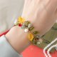 透きとおるイエローのレモン、深みのあるグリーンのリーフ、そして赤いベリーのようなガラスビーズ。