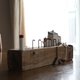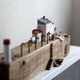 流木、ねじ・釘(赤錆加工)、ホワイトウッド(欧州スプルース、ドイツトウヒなど)、ステイン、ペンキ等で製作。ヤスリでダメージ感を演出しています。「潮騒とカモメの鳴き声、風の音」を感じていただければ幸いです。