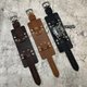 • 軍事風格手作牛皮男士錶帶配不鏽鋼銀扣