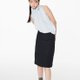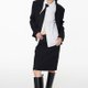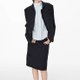 EMBLEM 經典條紋短裙 偏直身的H版型小短裙 裙身下擺處做一條橫向水平分割拼接設計 分割線上兩側各設有一個隱形插袋 保證裙身面料線條的連貫性同時能增加細節辨識度 無腰頭設計區分常規西服半裙的肅穆感 黑藍條紋經典時髦 適用於早秋的多場合