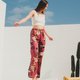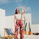 The 'Saturday' pants have relaxed wide legs made from satin with a comfortably elasticized waist that can be worn high or low rise. Wear yours with a crop top and sandals for an effortless day look.