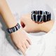 設計師嚴選稀有珍貴**一線黑瑪瑙**,磨製大器寬版排狀珠飾。黑瑪瑙上可見天然**白色線條**,寶石顆顆**黑白紋理清晰**,似**斑馬紋**,時尚前衛美麗。