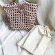 韓國仿皮革線日常浪漫小品編織手提側背包(淺奶茶色)