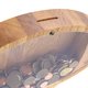 The piggy bank can be personalized, please enter required the name or text in the personalization field. Please note: wood is a natural material and the end finish may slightly vary from product to product.