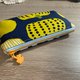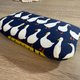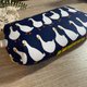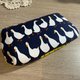 「鵝行暖果」是一款充滿北歐童趣的正反雙配色拉鍊包。深藍底上的白鵝整齊前行,畫面安靜又有秩序;翻到另一面,則是明亮溫暖的黃色果實圖案,為整體注入活力與光感。