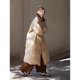大漠色的面料,色織布,桑蠶絲與棉混紡,高支高密的織造。中長款的衣長,在小腿中下左右,幾乎保護了身體所有怕冷的地方,在寒冷的冬季可以妥妥的保暖。