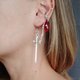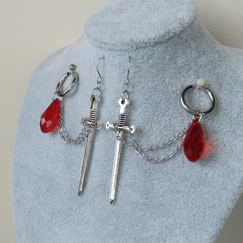 帶有鏈條、劍和猩紅色淚珠水晶的超長動漫耳環。禮品信息,禮品包裝可用。立即查看!