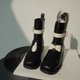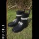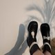 **鞋面** 黑色頭層小牛皮+白色頭層小牛皮