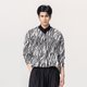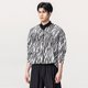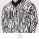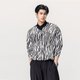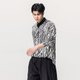 品立春季斑馬紋印花長袖T恤男士休閑拼接立領上衣 - 男 T 恤 - 棉.麻 黑色