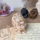 水晶擺飾系列都是由我們純手工製作而成,將天然水晶或礦石包覆在水晶滴膠中,凝結成可愛討喜的外表,小小的身軀裡蘊藏著滿滿的水晶能量,希望能藉由水晶的能量磁場,帶來實現願望的助力。