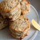 小麥麵粉、全麥麵粉、豆漿、玉米粉、自製純素奶油、三溫糖、日曬鹽、泡打粉、英國唐寧女爵茶葉、蔓越梅乾