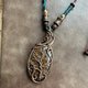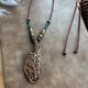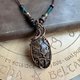 使用天然石,配以純銅線,以繞線方式手作而成, 然後再加上復古做舊效果, 再拋光處理令花紋更具深度和對比.