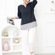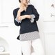 衣襬白底黑條紋長袖上衣/黑色 透氣舒適,夏秋皆宜