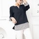 衣襬白底黑條紋長袖上衣 黑色