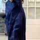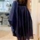 是拾月最喜歡的深藍色布料。布料意大利製百份百純苧麻,  有光澤以及格外挺身,輕薄透,有支撐力,秋涼淺冬均適合,穿上身是濃濃的古典味。裙裾位車了小小一條黑色絲帶花邊,優雅中帶一點點低調的可愛。