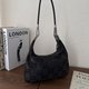 經典 Gucci 復古單品 — 採用標誌性的 黑色 GG 老花帆布 搭配皮革細節與銀色金屬扣,輕巧又耐用。優雅的 Hobo 弧形包身,隨性中帶有高級感,百搭又實用。