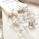 選用光澤輕身樹脂珠、有機輕紗,和貝珠設計,耳環會隨配戴者的動作而輕輕搖曳,是靈動又帶點華麗的一款耳鉤。旨在在特殊日子里展示出風采。垂墜的設計增添了精緻,同時優雅地修飾頸部,臉圓女生也非常合適。適用於生日派對、宴會等場合。
