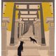 稲穂をくわえている黒狛狐のポストカード5枚セット。
