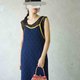 設計手作-寶藍色鉤織撞色罩衫吊帶背心洋裝