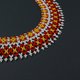- .A red and white necklace is a stylish and original decoration. A dainty beaded necklace will make you more tender and sophisticated. A seed bead necklace will be a wonderful graduation gift. Despite the size, the bead necklace is not heavy. A woven necklace is suitable for any look and is easily combined with clothes of different styles.