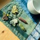 每一針一線皆由**手工縫制**,布面綴以立體絲瓜藤纏枝,藤蔓蜿蜒間,**嫩綠絲瓜與褐黃老瓜相映成趣**,佐以綻放的絲瓜花與層疊葉片,觸感細膩,形態靈動。