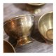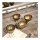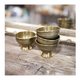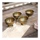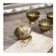 與常見厚重的歐式銅器不同,這組小杯的材質相對輕薄,給人一種精緻且充滿復古手工感的質地。杯身上緣環繞著一圈精巧的手工壓印紋飾,樸實的圖案與輕微的打磨痕跡,讓每一只杯子都帶有獨特的匠人溫度。 採用穩固的小高腳造型,線條圓潤,將其放置於桌面時能增添一份儀式感和優雅氣息。