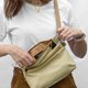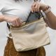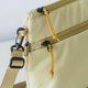 The lining fabric chooses a pair of light brown colors to match the beige bag body with triangular corner stitching to increase the strength of the sub compartment in the bag.