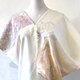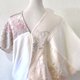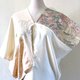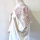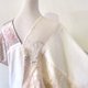 這件作品以日本傳說「羽衣天女」為靈感,拼接多種絲質白色布料,呈現光影層次與空氣般的流動感。細緻的花鳥圖紋與刺繡,像隱約的呢喃,讓件作品帶有古典的寧靜氣息。