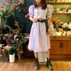 -手工測量尺寸:胸圍48公分,肩寬39公分 ,袖長38公分,衣長112公分,腰圍帶鬆緊