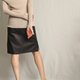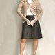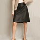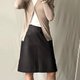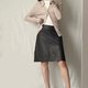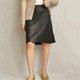 古著牛皮A字及膝裙,後中拉鍊穿脫,裙身有作十字拼接,有修飾身形的效果。縫有全內裏。 皮革本身有歲月的痕跡跟皺摺,但裙身沒有明顯的髒污跟瑕疵,介意者慎拍。日本品牌,韓國製。