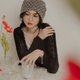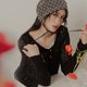 某某怪奇。MUCHAT手作小花蕾絲綁帶編織帽 (黑)