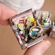 - Miniature artist's set with paints and brushes. The miniature is made in 1:12 scale. All parts are fixed with glue. Polymer plastic, acrylic paints, acrylic varnish and cardboard are used as materials for manufacturing.