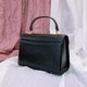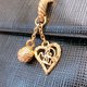 這顆黑色手提包是 Yumi Katsura 其中一個經典的設計款式,包包表面有一個立體的半圓金扣,下面懸掛了一個像小星球的不規則金球、一個雕有品牌縮寫「 YK 」字樣的通花愛心,包蓋也做了一個獨特的弧形設計。 這顆包的容量算滿大的,裡面有一個拉鏈格跟一個薄格可以存放小物品,包包背面也有做另外一個薄格。 它有附一條長肩帶,裝上可以側背或斜背。