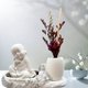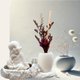 -- 套件含: 小佛, 豪華田園盤, 珪藻粒. 擴香石膏杯.咖啡小瓶.擴香棒1支.乾燥花一包.永生花束.(永生花採隨機出貨).
