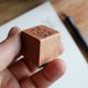 This stamp is a small but carefully handmade product. A 1-inch x 1-inch wooden cube is luxuriously coated with natural oil and sanded to improve practicality and quality.