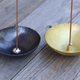 ころりとまあるい錫のお香立てと、深型の純銅黒染鉢を組み合わせた香鉢セットです。