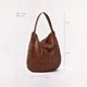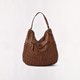寬窄不一的皮片交疊出不工整的圖紋,放大皮革編織的層次感,有如高第在奎爾公園裡的馬賽克拼接磁磚般,只不過它的色彩繽紛,而Noreen的編織圖紋是單色馬賽克。