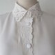 復古刺繡領寬鬆歐美版型長袖白色古著襯衫-T087