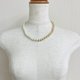 ガラスパールバイカラーオールノットネックレス/8mm約43cm/ホワイトxゴールド/made in japan