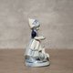 帶有荷蘭經典Delft Blue(代爾夫特藍)風格的手繪陶瓷雕像,圖案為早期穿著荷蘭傳統服飾的小女孩正在餵雞,雕像擺飾狀況很好無缺損,有輕微的使用與歲月痕跡;詳細狀況可參考其他照片。