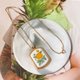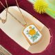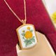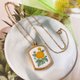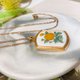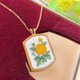 【西洋古董飾品】陽光橘色花卉 陶瓷彩繪鑲嵌 鑲框式 質感 項鍊 - 項鍊 - 貴金屬 金色