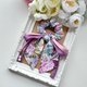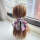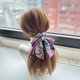 使用美國品牌棉布搭配製作成長尾蝴蝶結、加上緞帶和釘珠做成的髮圈,氣質浪漫,無論上班或休閒聚會都適合配戴。