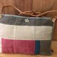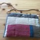 手織りヘンプ100%1点ものです。染め:のばら、茜+ラックダイ、藍、墨その他 サイズ:27×19センチ ひも120センチ キルト芯が入っていてしっかりした作り、スナップで開けやすく、中にはカードや小銭が入るポケット2個付き。手縫いで丁寧に仕上げてあります。男女兼用。細くても丈夫な皮革ひもを使っています。