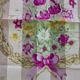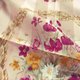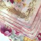 Vintage handkerchief crafted from a quality cotton-silk blend, featuring a lightweight and soft texture. It showcases a beautiful floral print with delicate, wreath-style blooming flowers on a pink background, finished with a neat rolled hem. Truly adorable and feminine. ♡ A wonderful treat for yourself or a lovely gift for someone special.