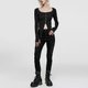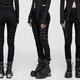 大腿兩側幾何圖形分割,加編織織帶金屬金屬孔洞裝飾